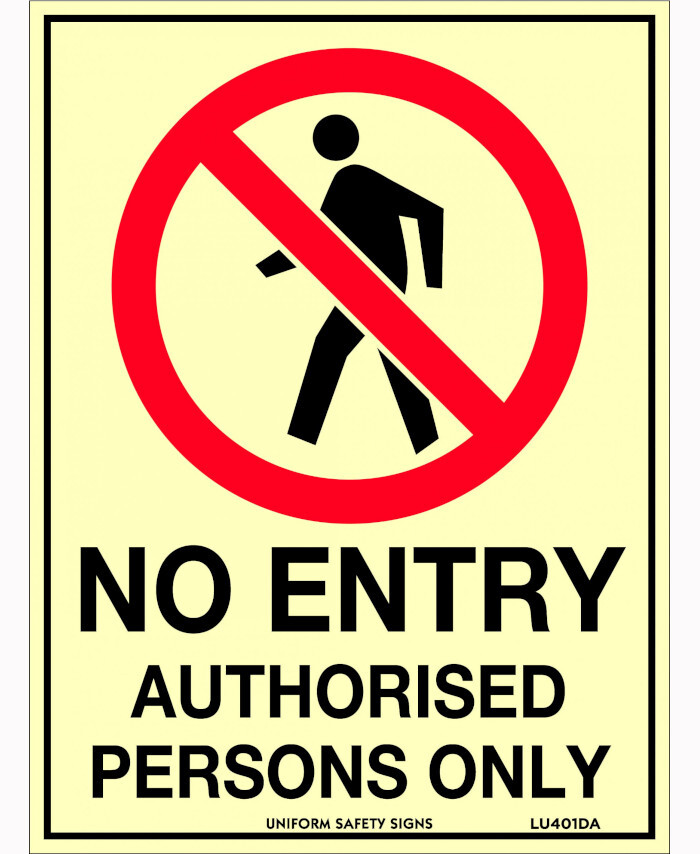 3. 180x240mm - Self Adhesive - Luminous - No Entry Authorised Persons Only