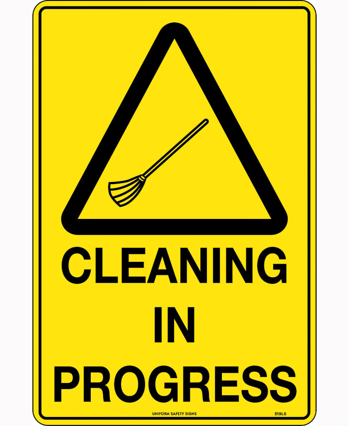 3. 240x180mm - Self Adhesive - Blk/Ylw - Cleaning in Progress