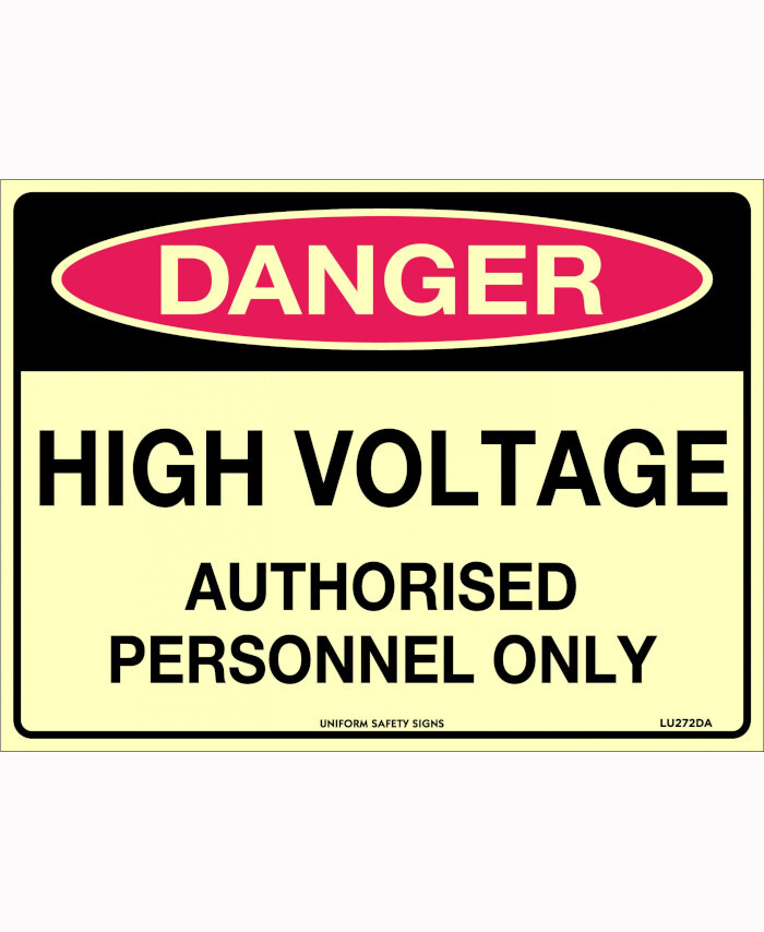240x180mm - Self Adhesive - Luminous - Danger High Voltage Authorised Personnel Only