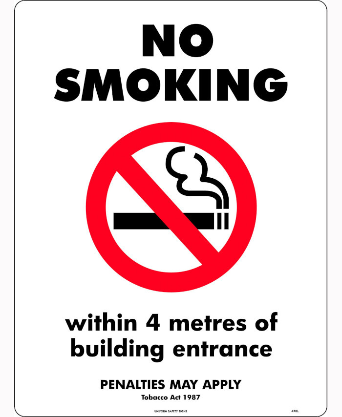 240x180mm - Self Adhesive - No Smoking, Within 4 Metres Of Building Entrance (Penalties May Apply) T