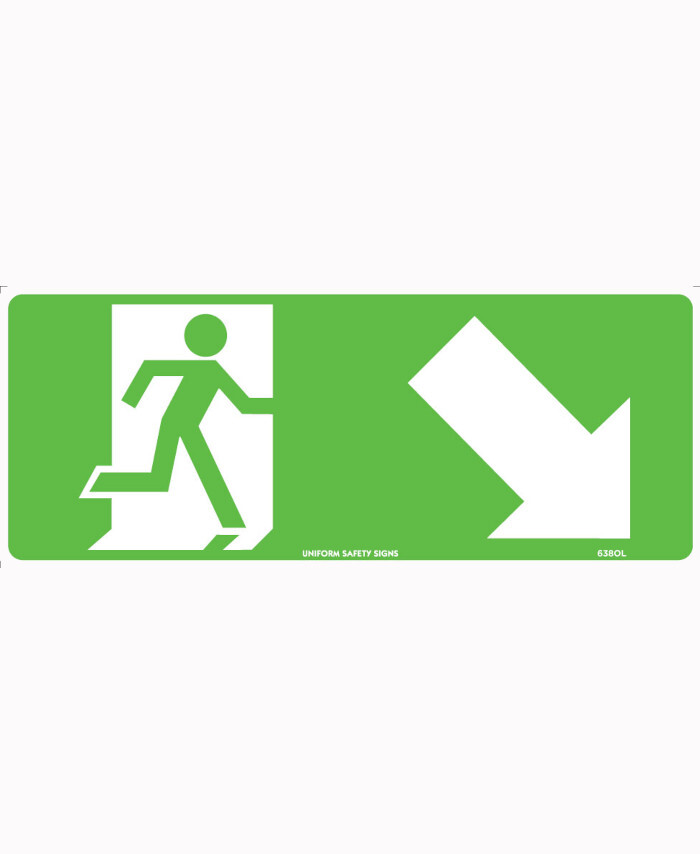 WORKWEAR, SAFETY & CORPORATE CLOTHING SPECIALISTS - 350x145mm - Metal - Luminous - Running Man with Arrow Down/Right