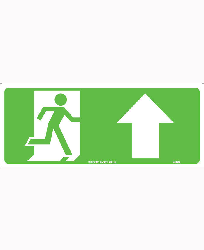 WORKWEAR, SAFETY & CORPORATE CLOTHING SPECIALISTS - 350x145mm - Metal - Luminous - Running Man with Arrow Up