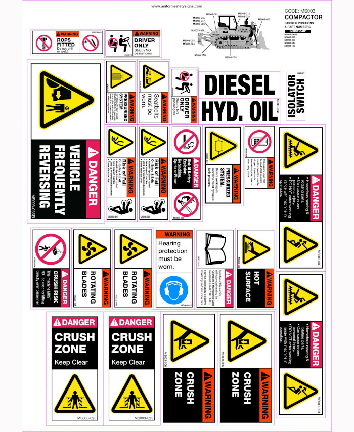 WORKWEAR, SAFETY & CORPORATE CLOTHING SPECIALISTS - 360x780mm - Machinery Sticker Sets - Compactor (36 decals per sheet)