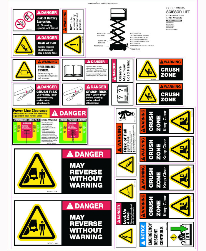 3. 380x500mm - Machinery Sticker Sets - Scissor Lift (20 decals per sheet)