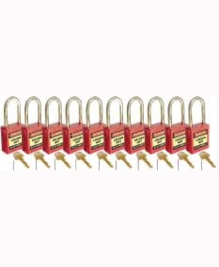 WORKWEAR, SAFETY & CORPORATE CLOTHING SPECIALISTS - 42mm Premium Safety Padlocks - Red - Set of 10 - Keyed Alike