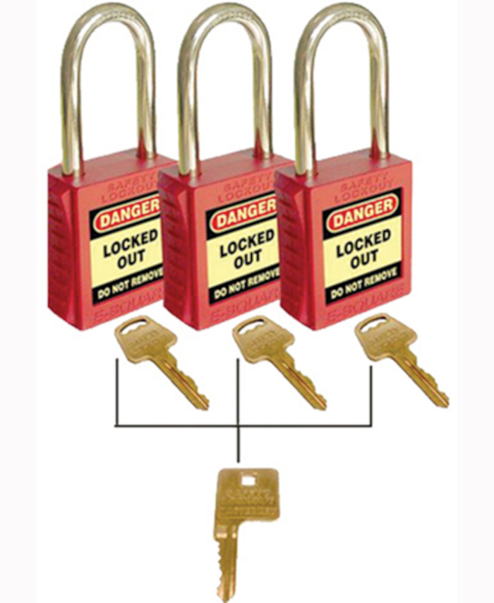 WORKWEAR, SAFETY & CORPORATE CLOTHING SPECIALISTS - 42mm Premium Safety Padlocks - Red - Set of 3 - Keyed Alike