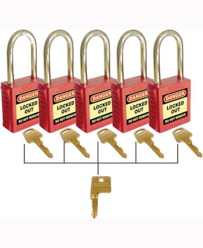 WORKWEAR, SAFETY & CORPORATE CLOTHING SPECIALISTS - 42mm Premium Safety Padlocks - Red - Set of 5 With Master Key