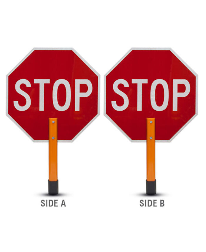 450mm - Class 1 Reflective - Stop/Stop Baton (Black/Orange) with Wooden Handle ** Includes Bolts &