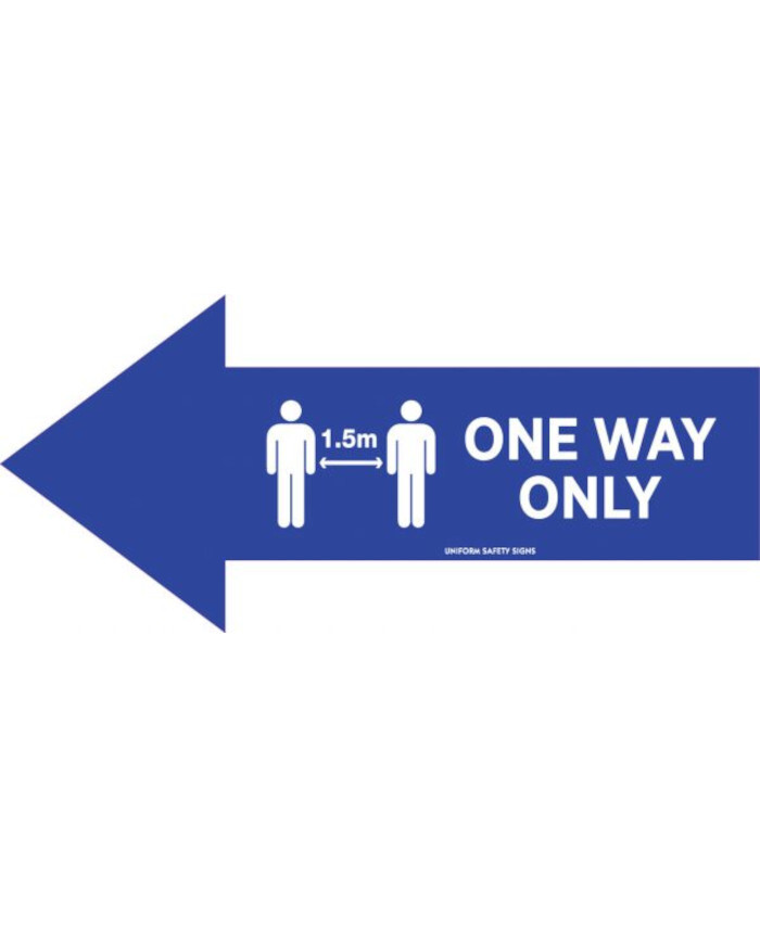 WORKWEAR, SAFETY & CORPORATE CLOTHING SPECIALISTS - 450x200mm - Anti Slip Floor Graphics - Carpet - Blue Left Arrow - One Way Only