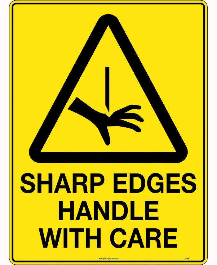 3. 450x300mm - Metal - Caution Sharp Edges Handle with Care