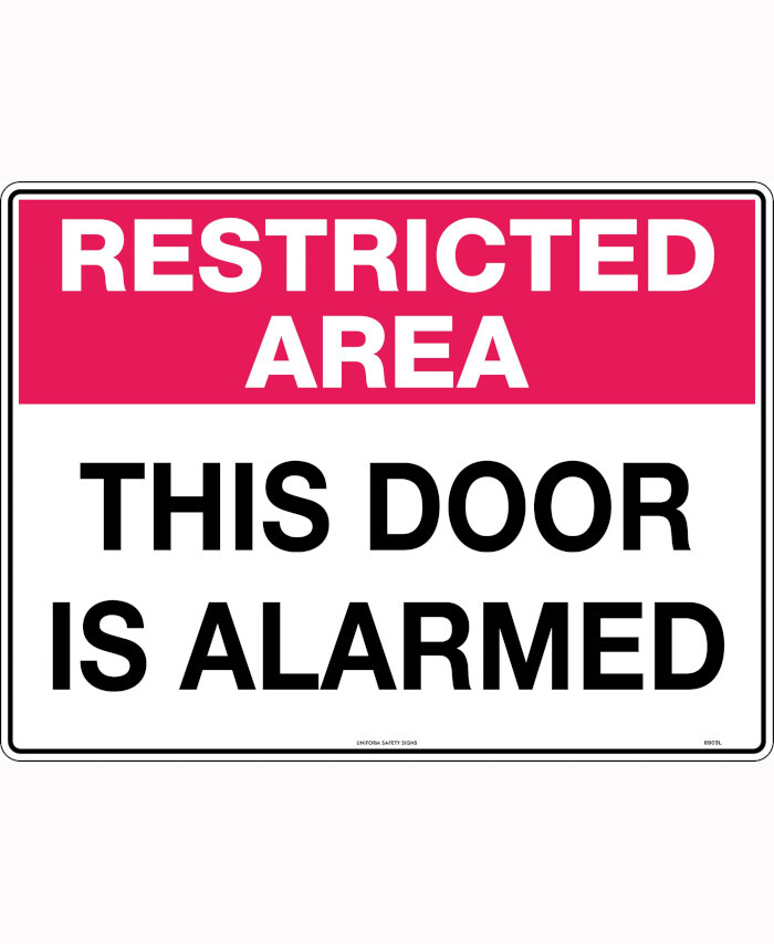 WORKWEAR, SAFETY & CORPORATE CLOTHING SPECIALISTS - 450x300mm - Metal - Restricted Area This Door is Alarmed