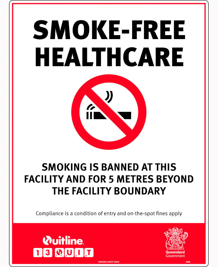 3. 450x300mm - Metal - Smoke-Free Healthcare, Smoking is Banned at This Facility and for 5 Metres Byeon