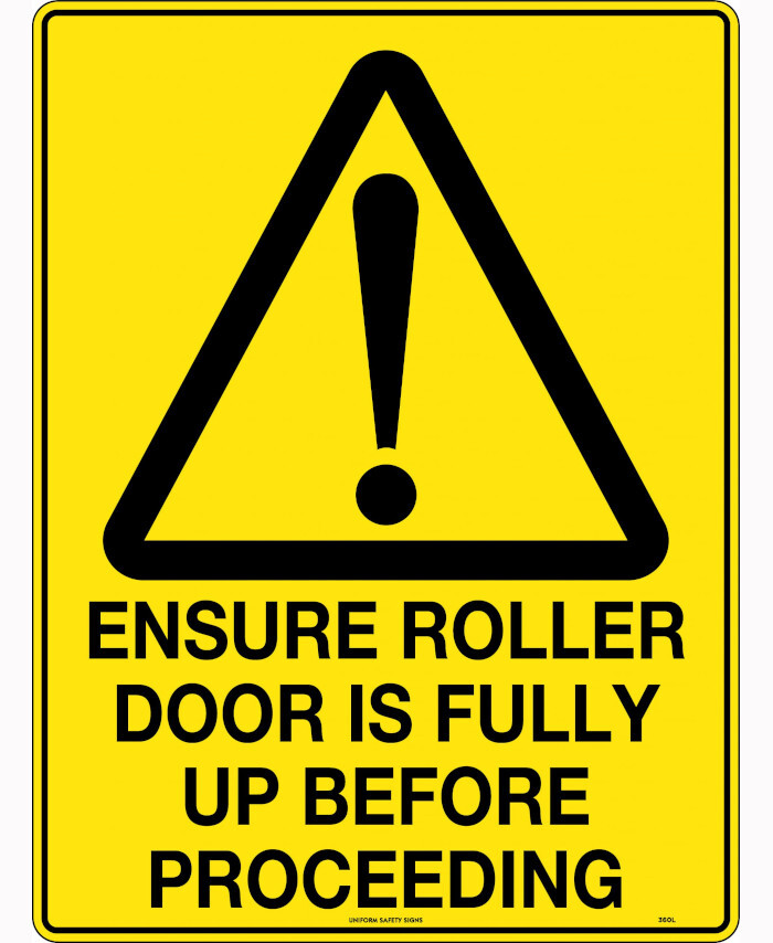 3. 450x300mm - Poly - Caution Ensure Roller Door is Fully Up Before Proceeding