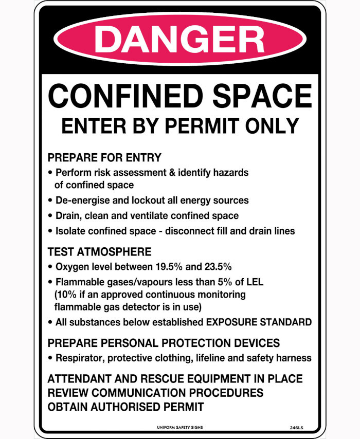 3. 450x300mm - Poly - Danger Confined Space Enter by Permit Only Prepare for Entry etc.