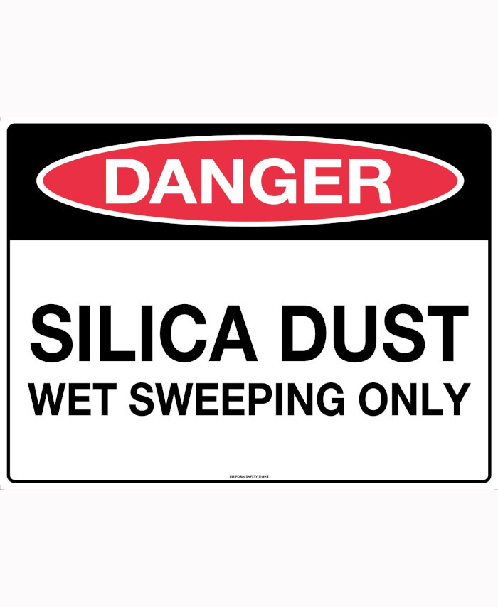 WORKWEAR, SAFETY & CORPORATE CLOTHING SPECIALISTS - 450x300mm - Poly - Danger Silica Dust Hazard Wet Sweeping Only