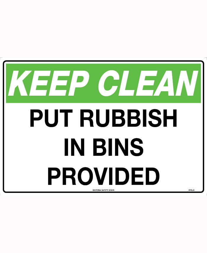 WORKWEAR, SAFETY & CORPORATE CLOTHING SPECIALISTS - 450x300mm - Poly - Keep Clean Put Rubbish in Bins Provided
