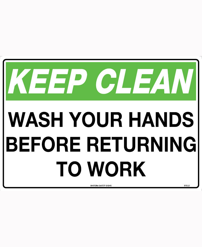 WORKWEAR, SAFETY & CORPORATE CLOTHING SPECIALISTS - 450x300mm - Poly - Keep Clean Wash your Hands before Returning to Work