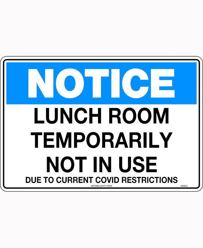 3. 450x300mm - Poly - Notice Lunch Room Temporarily Not In Use Due to Current Covid Restrictions