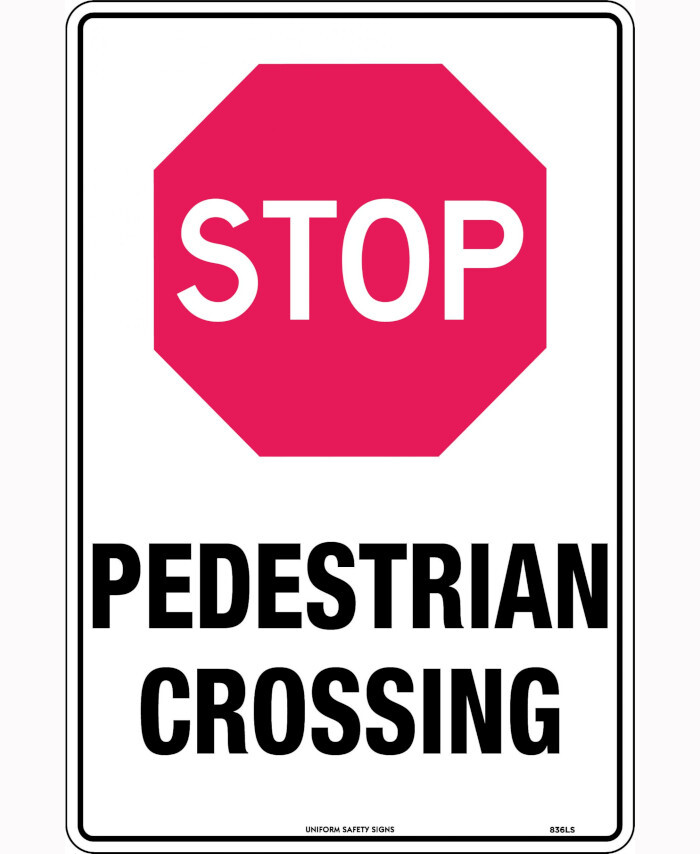 WORKWEAR, SAFETY & CORPORATE CLOTHING SPECIALISTS - 450x300mm - Poly - Stop Pedestrian Crossing