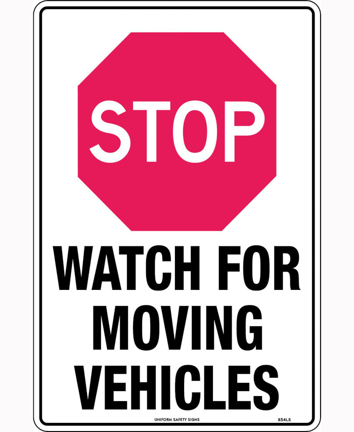 450x300mm - Poly - Stop Watch out for Moving Vehicles