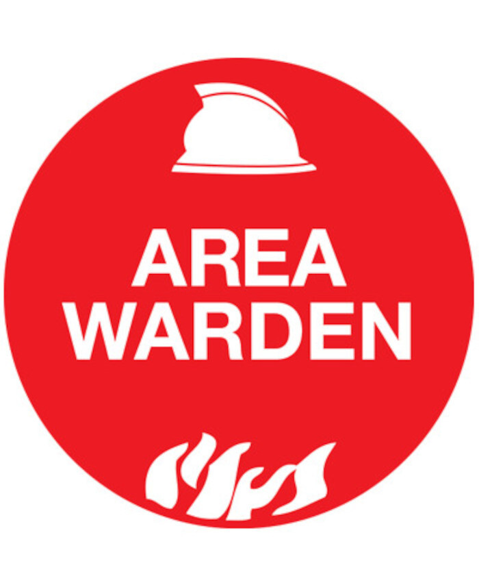 WORKWEAR, SAFETY & CORPORATE CLOTHING SPECIALISTS - 50mm Disc - Self Adhesive - Sheet of 12 - Area Warden Pictogram