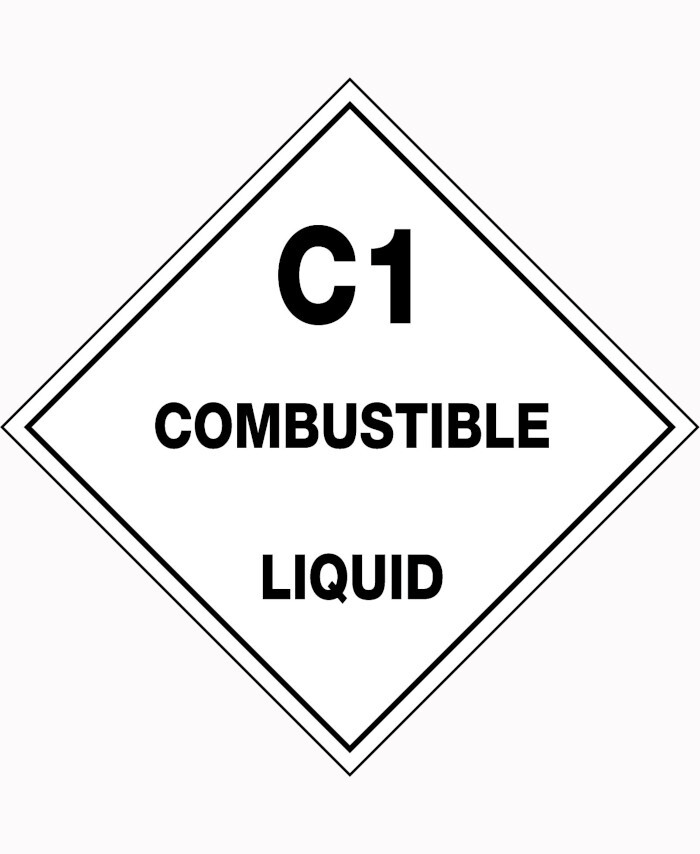 3. 50x50mm - Self Adhesive - Sheet of 12 - C1 Combustible Liquid