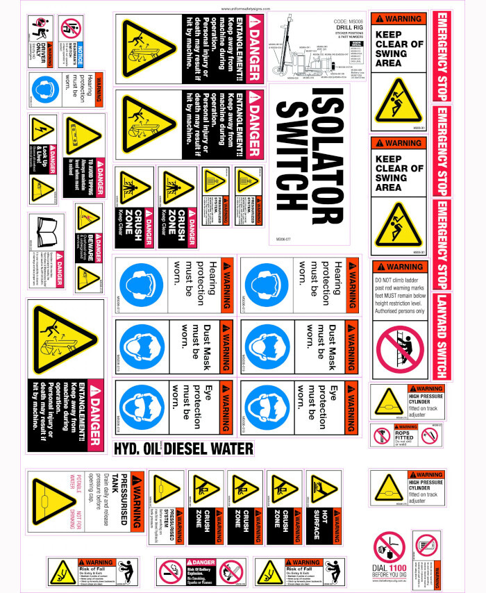 WORKWEAR, SAFETY & CORPORATE CLOTHING SPECIALISTS - 570x750mm - Machinery Sticker Sets - Drill Rig (42 decals per sheet)