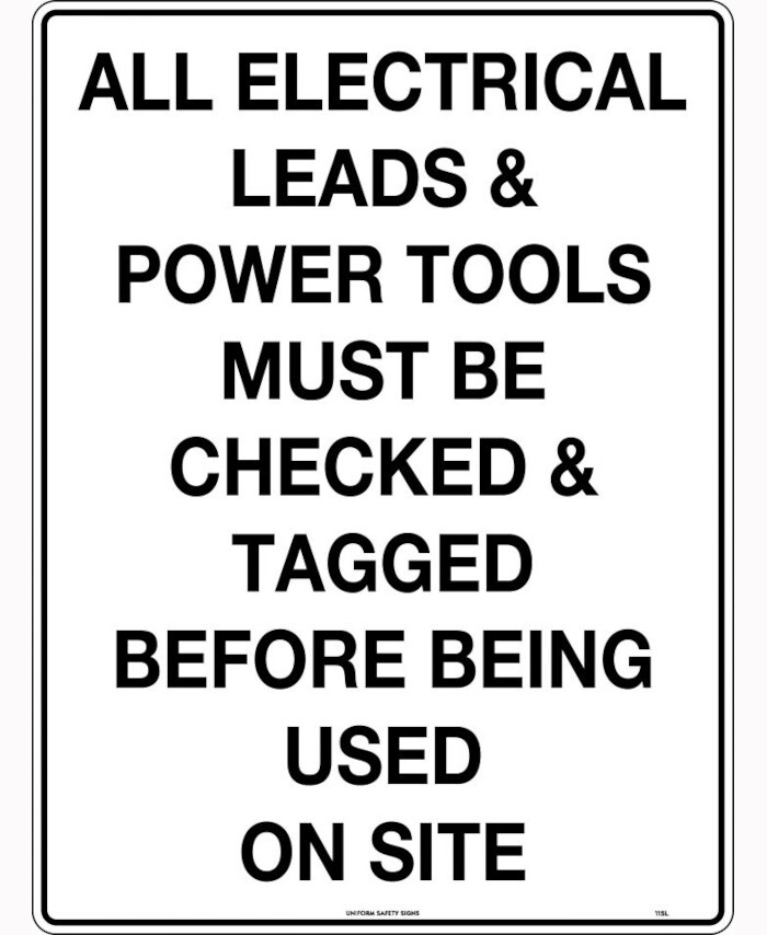 3. 600x400mm - Corflute - All Electric Leads and Power Tools Must be Checked and Tagged Before Being Us
