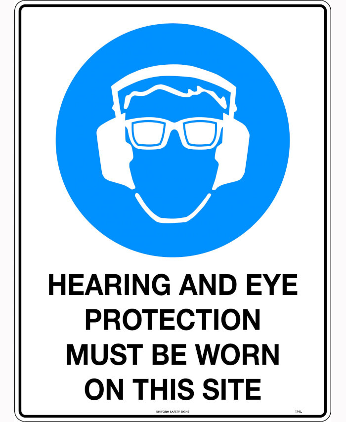 WORKWEAR, SAFETY & CORPORATE CLOTHING SPECIALISTS - 600x400mm - Corflute - Hearing & Eye Protection Must Be Worn On This Site