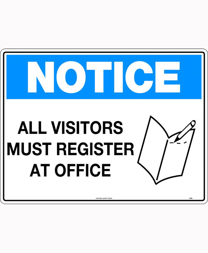 3. 600x400mm - Corflute - Notice All Visitors Must Register at Office