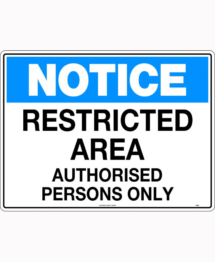 3. 600x400mm - Corflute - Notice Restricted Area Authorised Persons Only