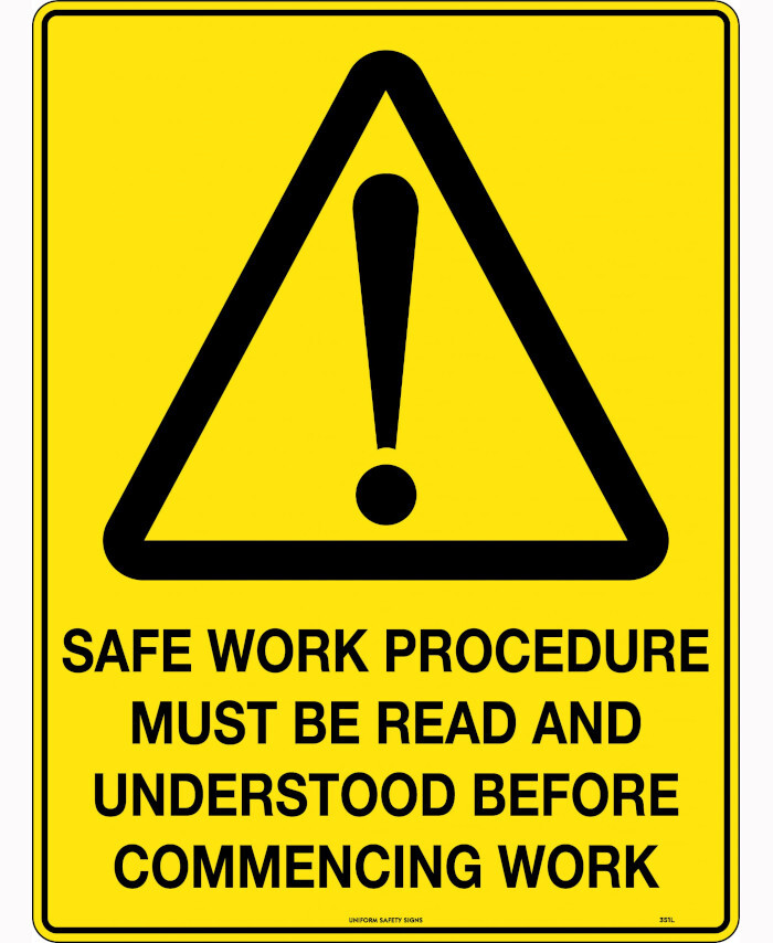 3. 600x400mm - Corflute - Safe Work Procedure Must be Read and Understood Before Commencing Work