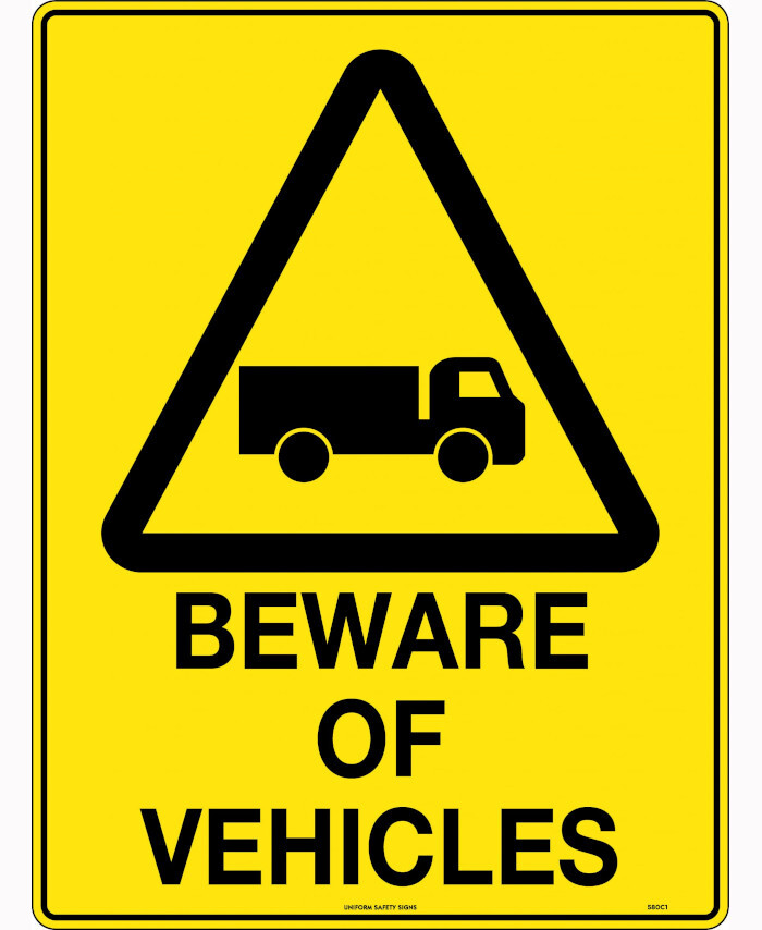 600x400mm - Metal, Class 1 Reflective - Beware Of Vehicles