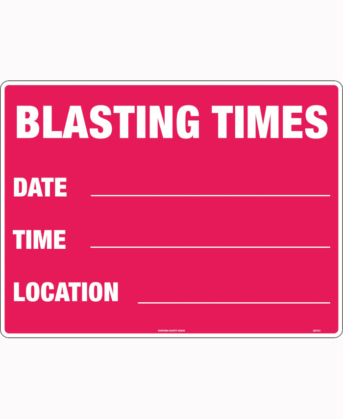 600x400mm - Metal, Class 1 Reflective - Blasting Times Date Time . Location .