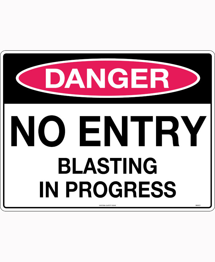 600x400mm - Metal, Class 2 Reflective - Danger No Entry Blasting in Progress
