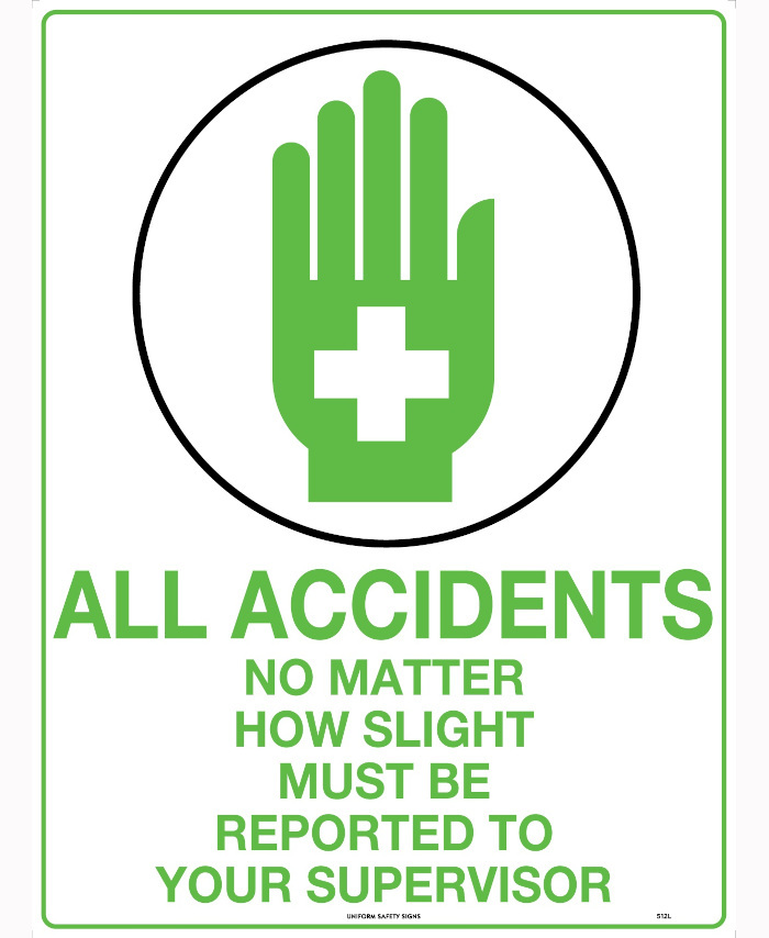 600x400mm - Poly - All Accidents No Matter How Slight Must Be Reported To Your Supervisor