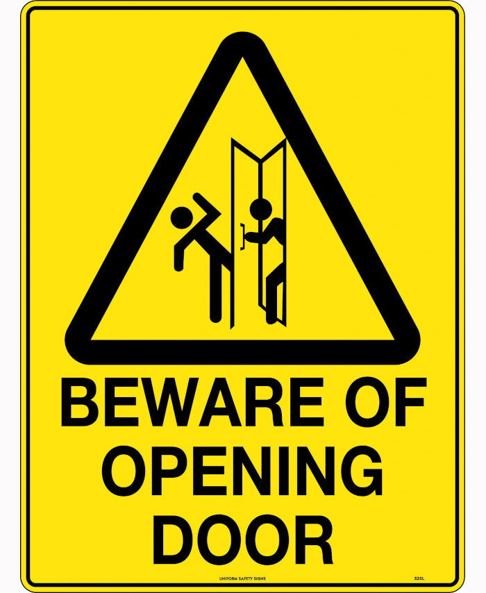 3. 600x400mm - Poly - Caution Beware of Opening Door