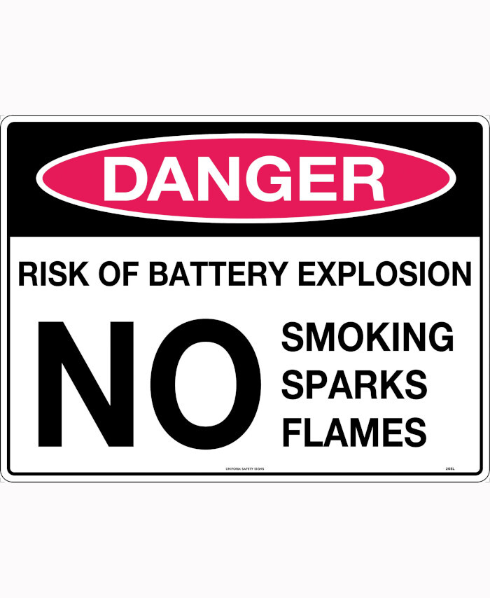 3. 600x400mm - Poly - Danger Risk of Battery Explosion No Smoking Sparks Flames