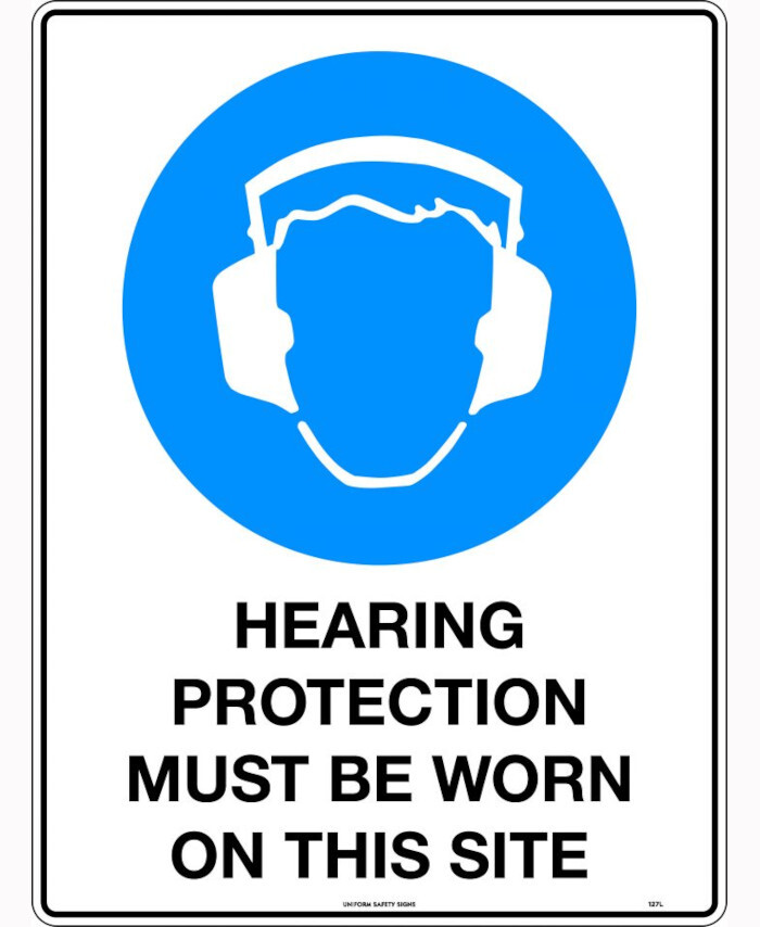 WORKWEAR, SAFETY & CORPORATE CLOTHING SPECIALISTS - 600x400mm - Poly - Hearing Protection Must be Worn on This Site