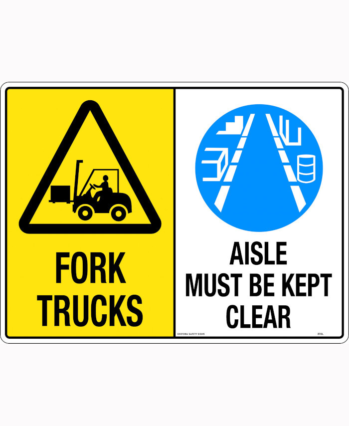 3. 600x400mm - Poly - Multi Sign - Fork Trucks/Aisle Must Be Kept Clear