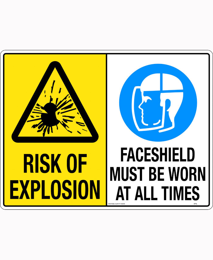600x400mm - Poly - Multi Sign - Risk Of Explosion/Face Shield Must Be Worn At All Times