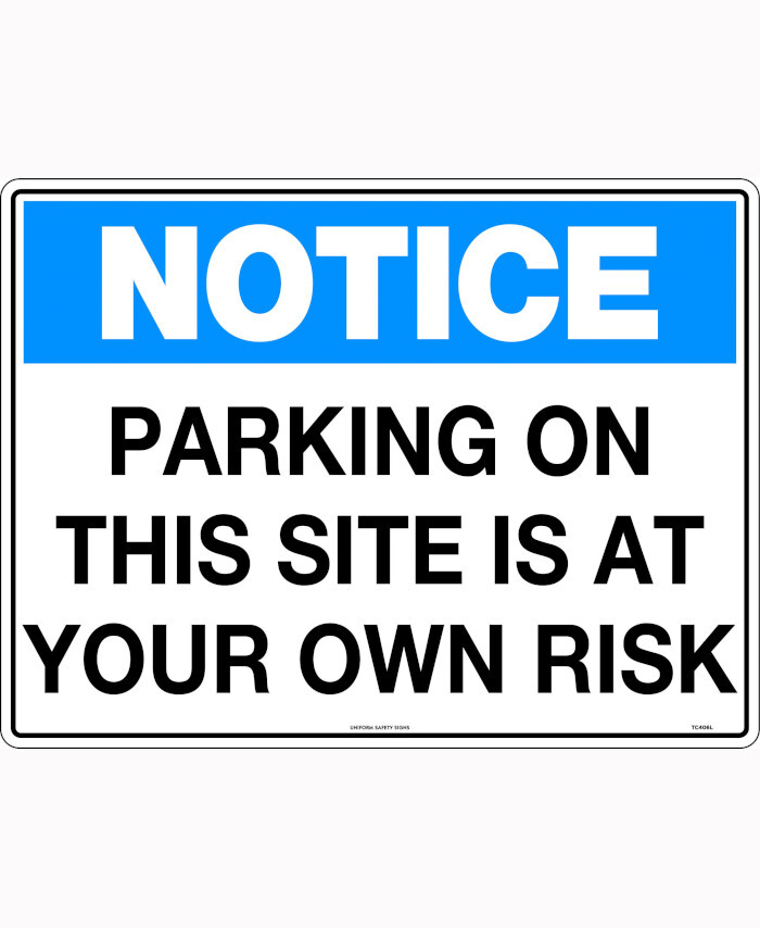 WORKWEAR, SAFETY & CORPORATE CLOTHING SPECIALISTS - 600x400mm - Poly - Notice Parking on This Site is at Your Own Risk