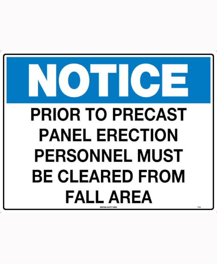 3. 600x400mm - Poly - Notice Prior to Precast Panel Erection Personnel Must be Cleared From Fall Area
