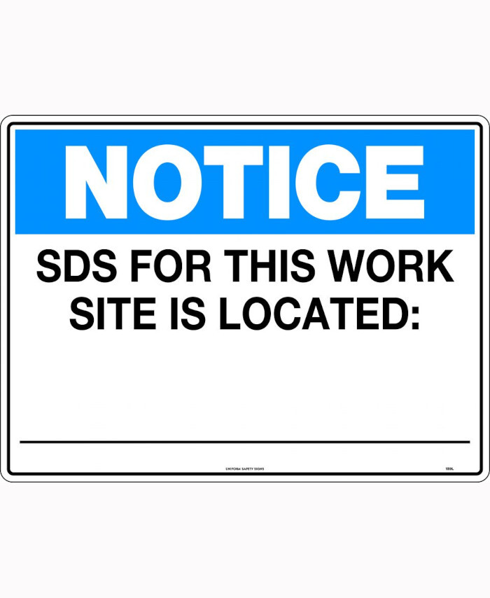 WORKWEAR, SAFETY & CORPORATE CLOTHING SPECIALISTS - 600x400mm - Poly - Notice SDS For This Work Site Is Located :-