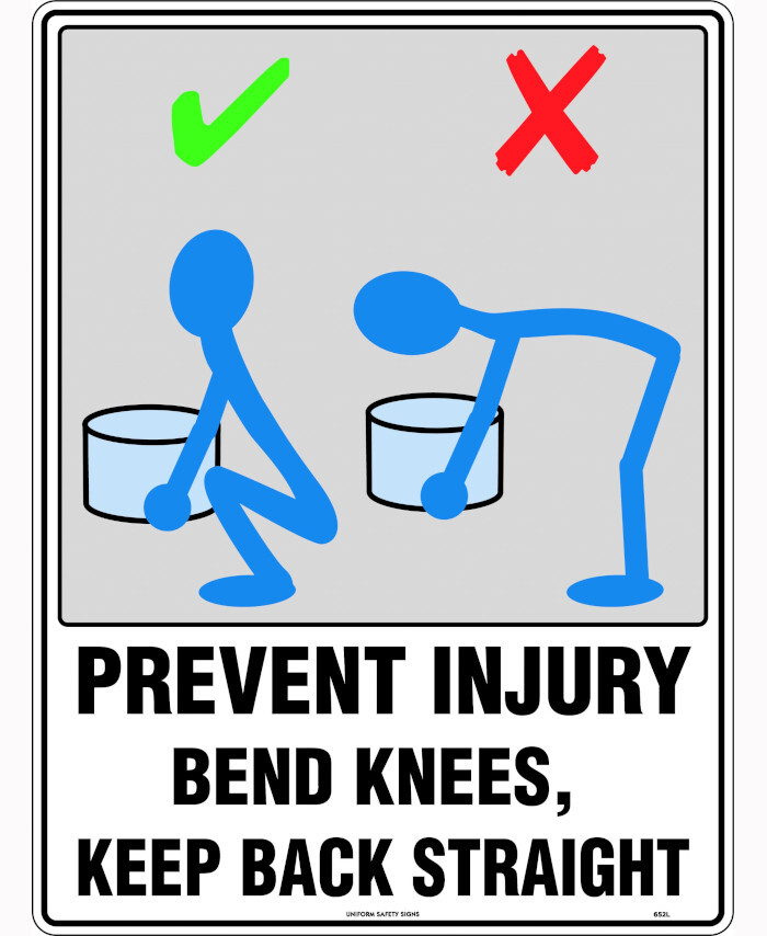 3. 600x400mm - Poly - Prevent Injury Bend Knees, Keep Back Straight