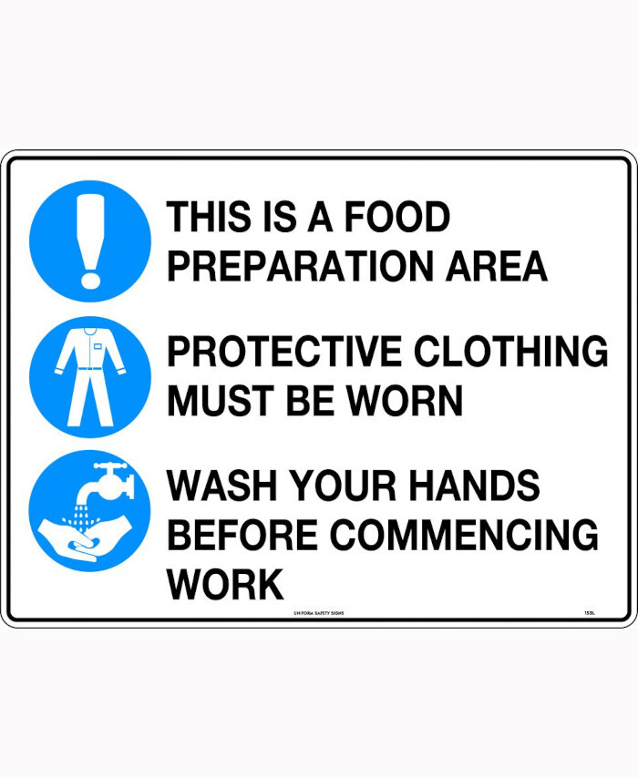 WORKWEAR, SAFETY & CORPORATE CLOTHING SPECIALISTS - 600x400mm - Poly - This is a Food Preparation Area etc (with pictos)
