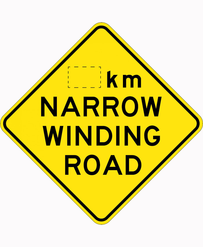 600x600mm - Aluminium - Class 1 Reflective - __km Narrow Winding Road