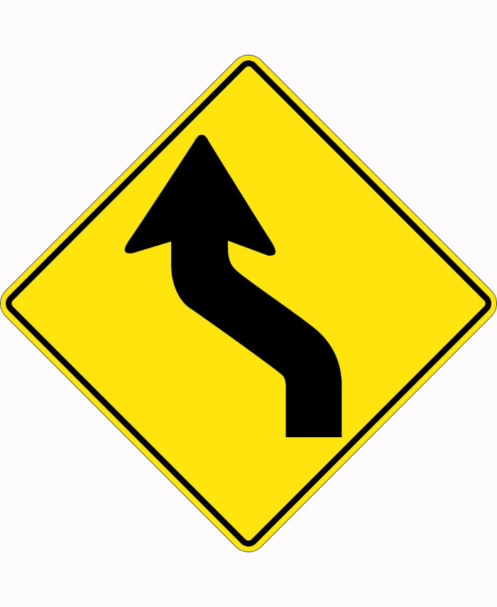 600x600mm - Aluminium - Class 1 Reflective - Reverse Curve Right Picto