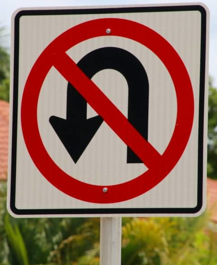 WORKWEAR, SAFETY & CORPORATE CLOTHING SPECIALISTS - 750x750mm - Aluminium Class 1 - No U Turn Symbol (Braced x2)