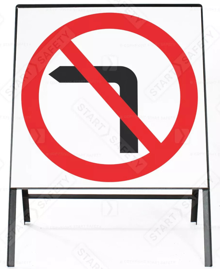 WORKWEAR, SAFETY & CORPORATE CLOTHING SPECIALISTS - 750x750mmmm - Aluminium, Class 1 - No Left Turn Symbol in Roundel (Braced)